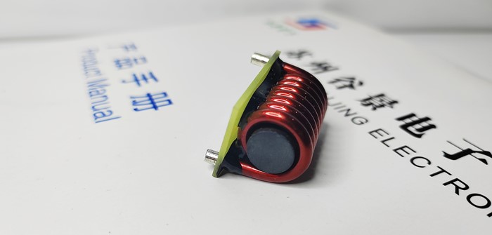 上圖是一款臥式磁棒電感,與臥式磁棒電感區別是它帶了底板。它的特點是大電流,電流可以做到10A。仔細觀察圖片會發現這款磁棒電感使用的是粗銅線,所以銅線繞制工藝和其他磁棒電感相比起來更復雜。