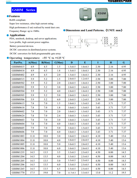 風華一體成型電感有HA63、HA65、HA125三個系列,分別對應谷景一體成型電感GSHM0603、GSHM0605、GSHM1205三個系列;除了這三個系列,谷景一體成型電感還有26款以上系列型號,還可以定制感值。